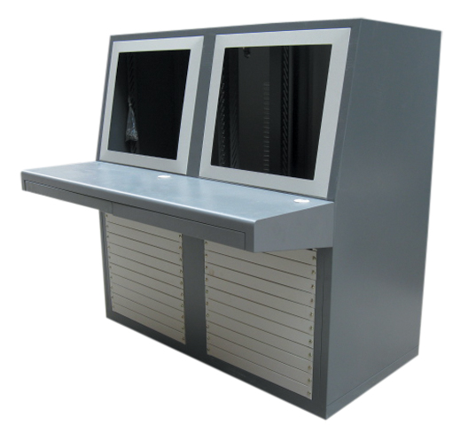 上下分體式結構,邊角圓弧處理,配鍵盤抽屜,木質前扶手,外觀穩重大氣,前后門板均可打開,方便設備安裝維修,可配散熱風機,增加空氣流動,結構牢固易于安裝,長途運輸費用較高