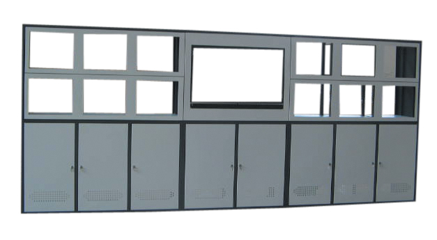 1.材質:立柱及主框架采用優質冷軋鋼板厚度為1.5-2.0mm,門板及面板采用1.2mm優質冷軋鋼板,保證安裝強度。2.外表噴塑,結構可拆卸,局部可用防火密度木板等材料裝飾,鐵木結合構成,外型高雅美觀,工藝精湛。3.電視墻分為直行三層、四層、上傾四層式等多種形式;排列形式分為直身弧形排列、上傾角弧形排列等;可做成焊接或全組裝;可根據需要印字;顯示器屏幕可內陷也可外凸;可進行現場測量,共同制定方案。